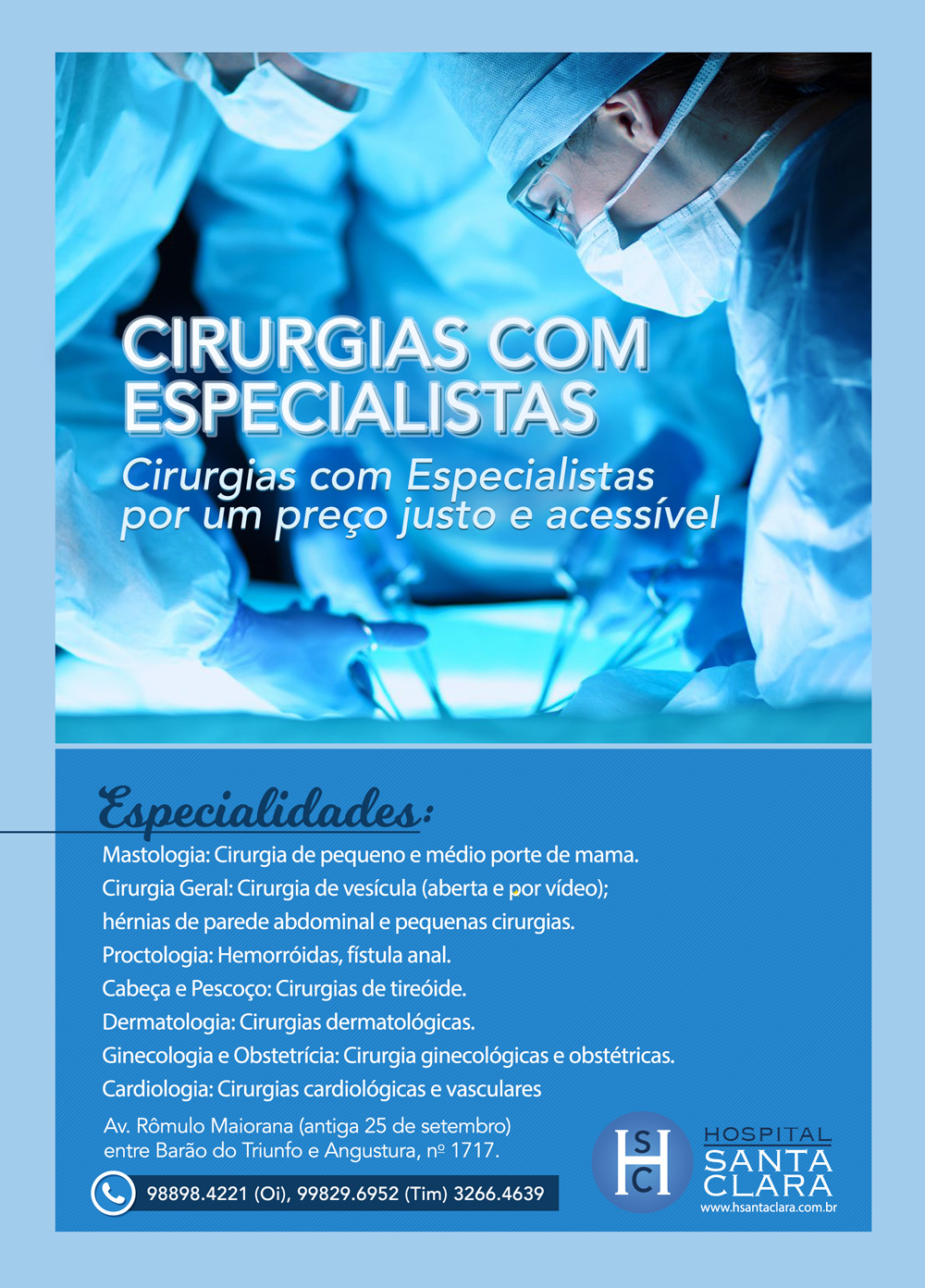 O Hospital Santa clara, oferece consulta especializada com enfoque em diversos tipos de cirurgia.